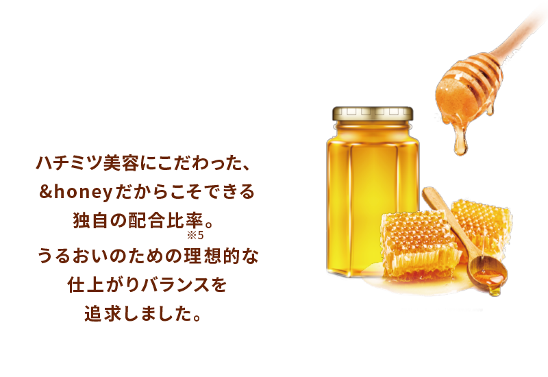 • ※2 保湿・保護成分の総称 ※5 製品に配合しているハチミツ(保湿)、リポソーム原料(*8、*9)の比率 ※6 国内にてリポソーム化したもの ※7 香りづけによる ※8 製品に配合しているハチミツ(保湿)、リポソーム原料(*10)の比率