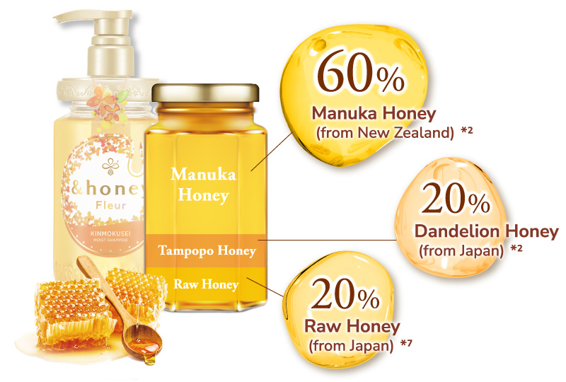 Three carefully selected types of honey*2 provide moisture and manageability to the hair